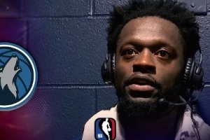 主持人:朱利叶斯,祝贺你,你是今晚的焦点人物。我们又见面了,控卫先生。嘿,朱利叶斯,我们刚才提到你们曾落后19分,球队想要反扑需要具备什么条件。你能描述一下你们当时都讨论了什么,以及你们是如何成功从掘金主场偷走这场胜利的吗?