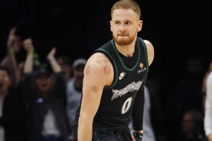 本场比赛,森林狼球员迪文岑佐表现不错,外线神准的同时也很全能,关键时刻的三分球和篮板帮助球队锁定胜局,打了31分钟,投篮9中6,三分球7中4,罚球2中0,拿到16分7篮板6助攻1抢断,正负值+20全场最高。