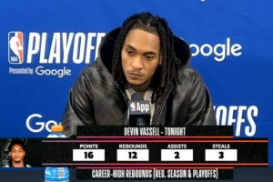 24直播网4月22日讯 NBA季后赛,马刺103-106惜败开拓者,大比分1-1战平。赛后德文·瓦塞尔接受了媒体采访,以下为采访全文。